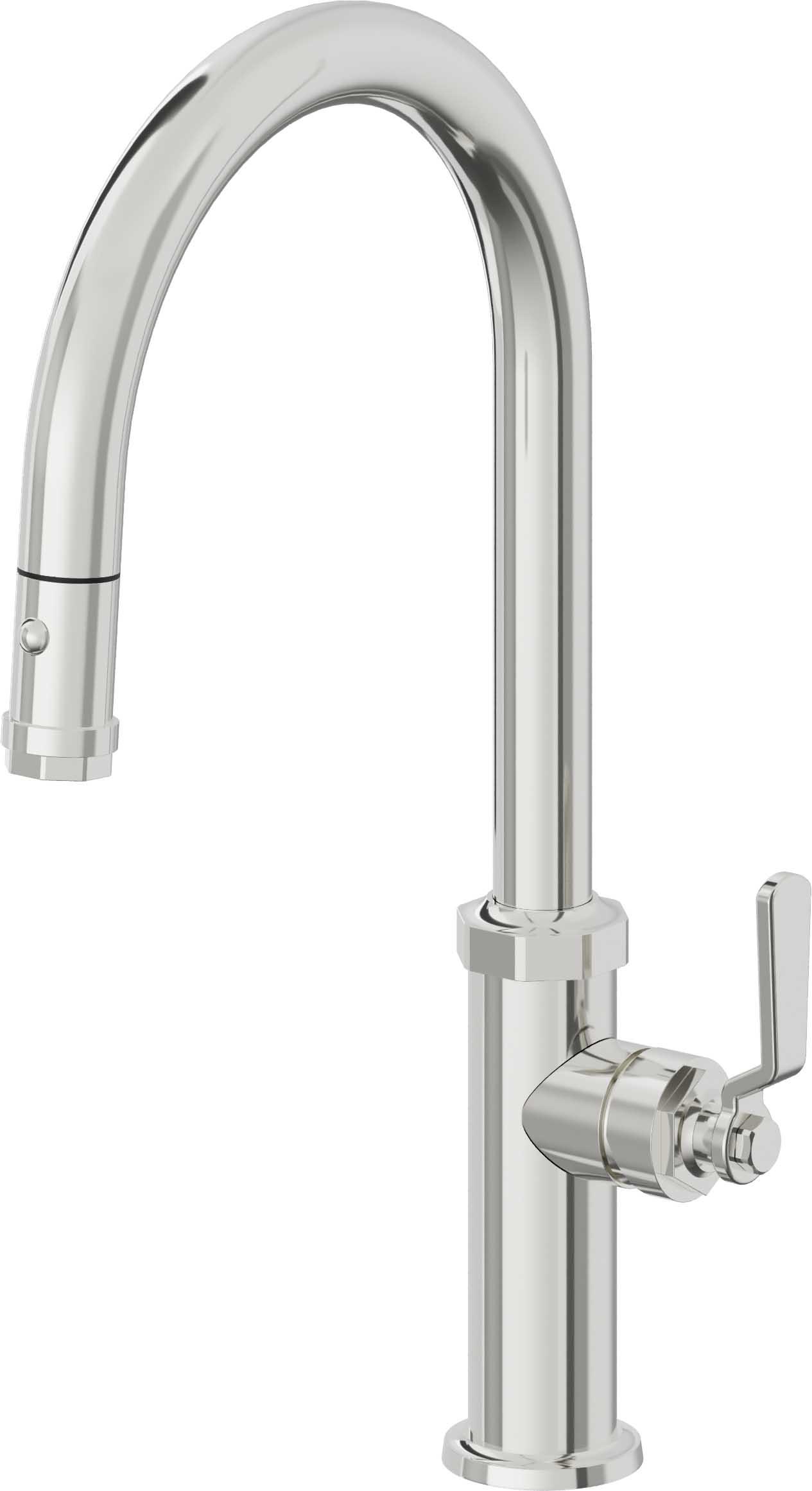 Pull-Down Kitchen Faucet with Button Sprayer - High Arc Spout
