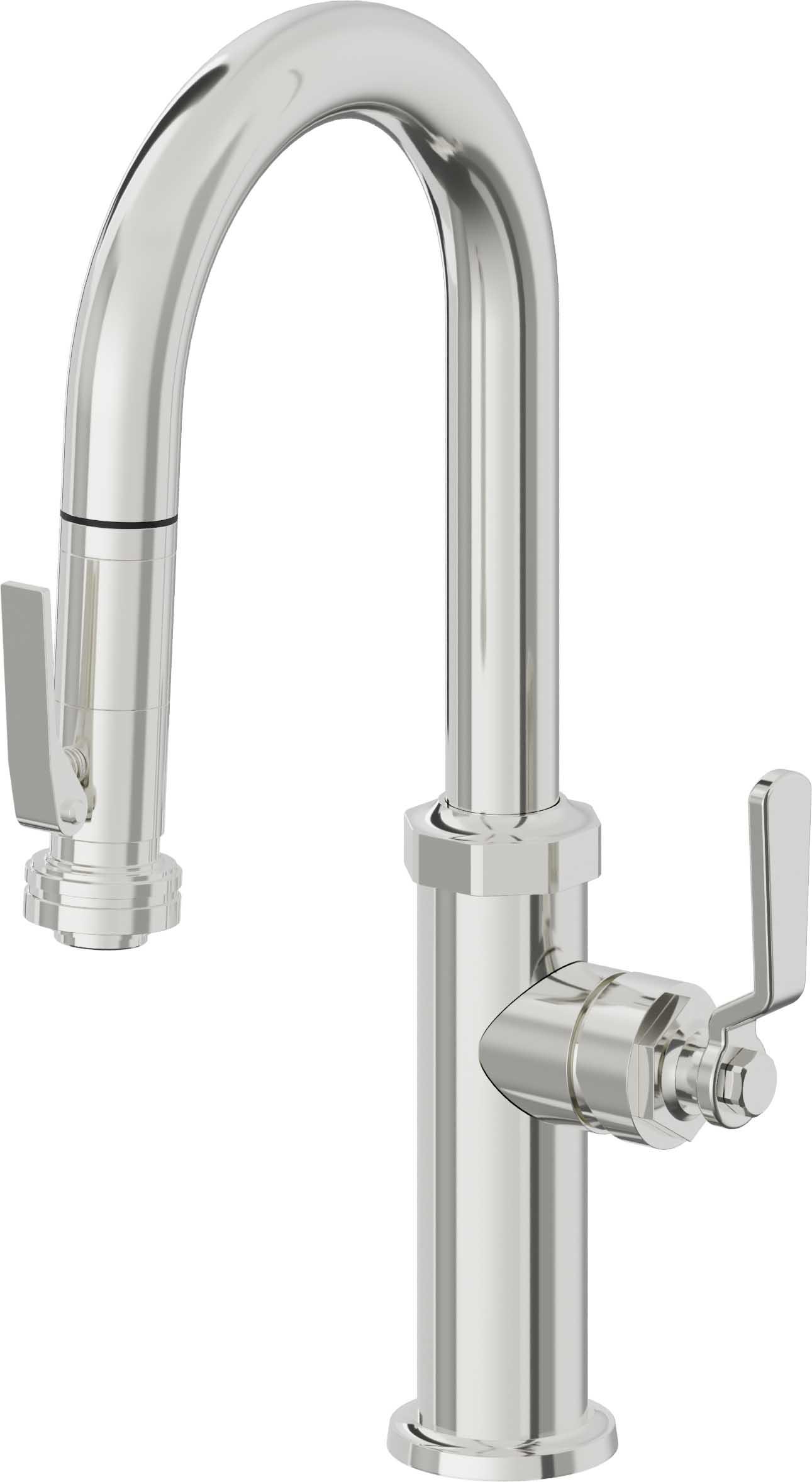 - 6-11/16 spout center to center with detent docking to secure sprayhead into spout