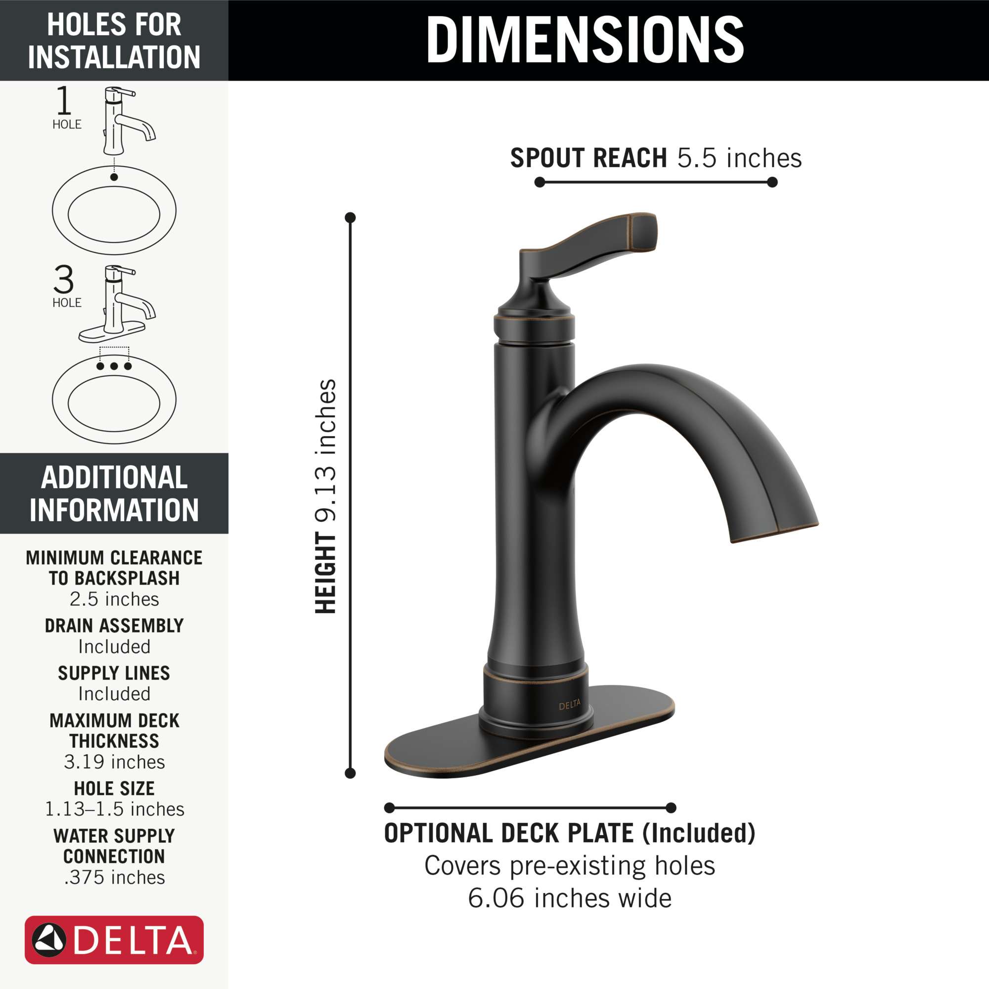 - Fits 1 or 3-hole 4 in. installations, optional deck plate (included) with gasket seal helps prevent drips and splashes from leaking under the bathroom sink faucet