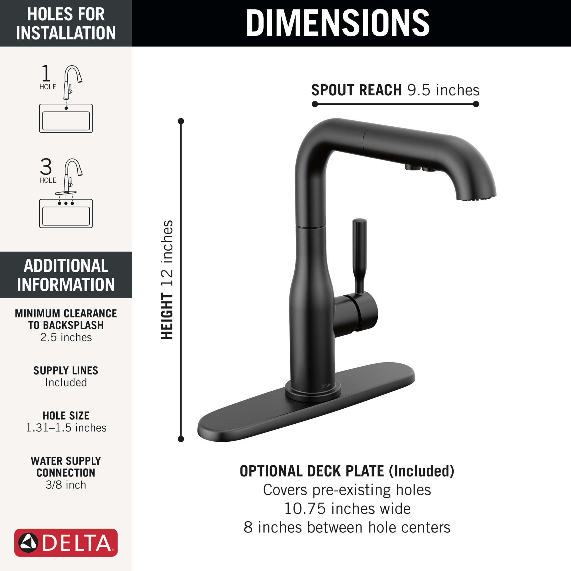 - Optional deck plate included for use with additional mounting configurations and a cohesive look