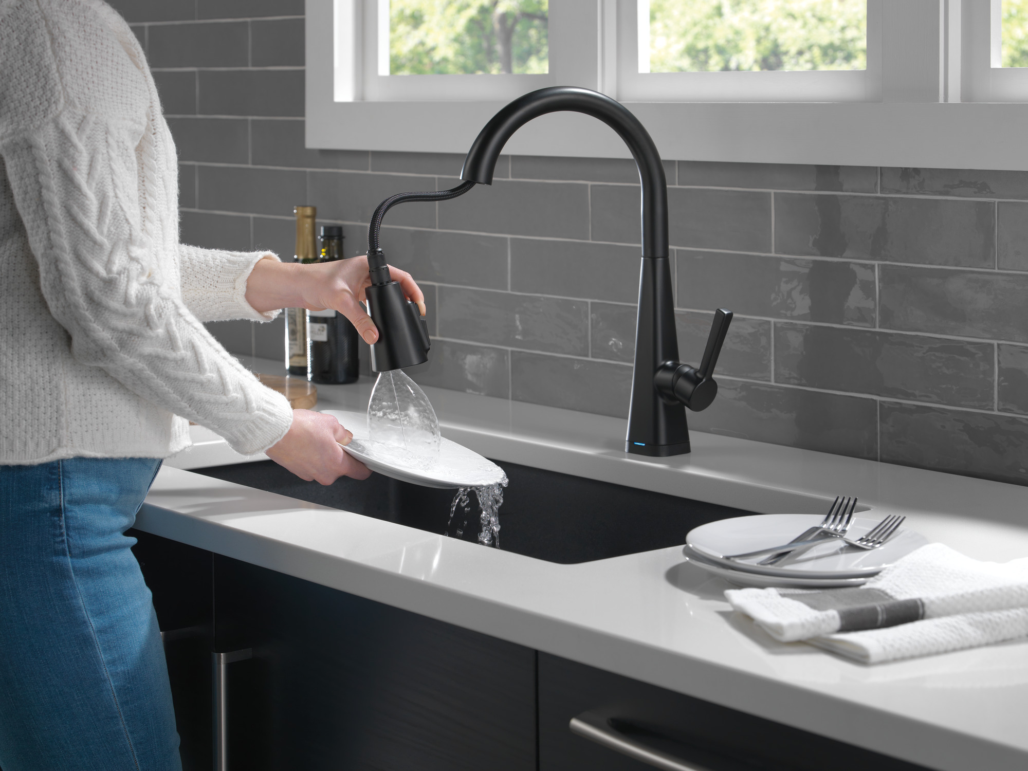 - With Touch2O® Technology a simple touch anywhere on the spout or handle will start and stop the flow of water