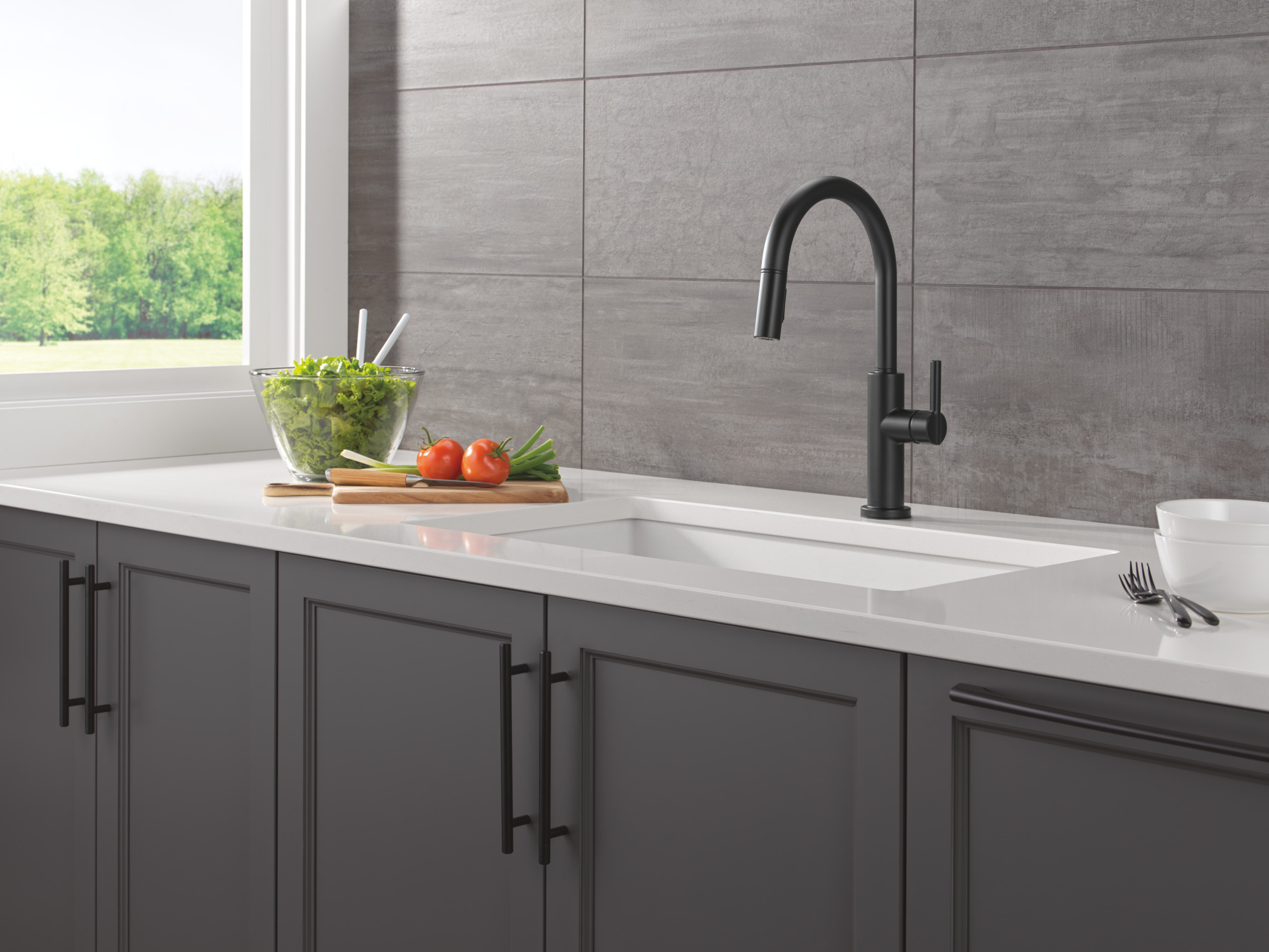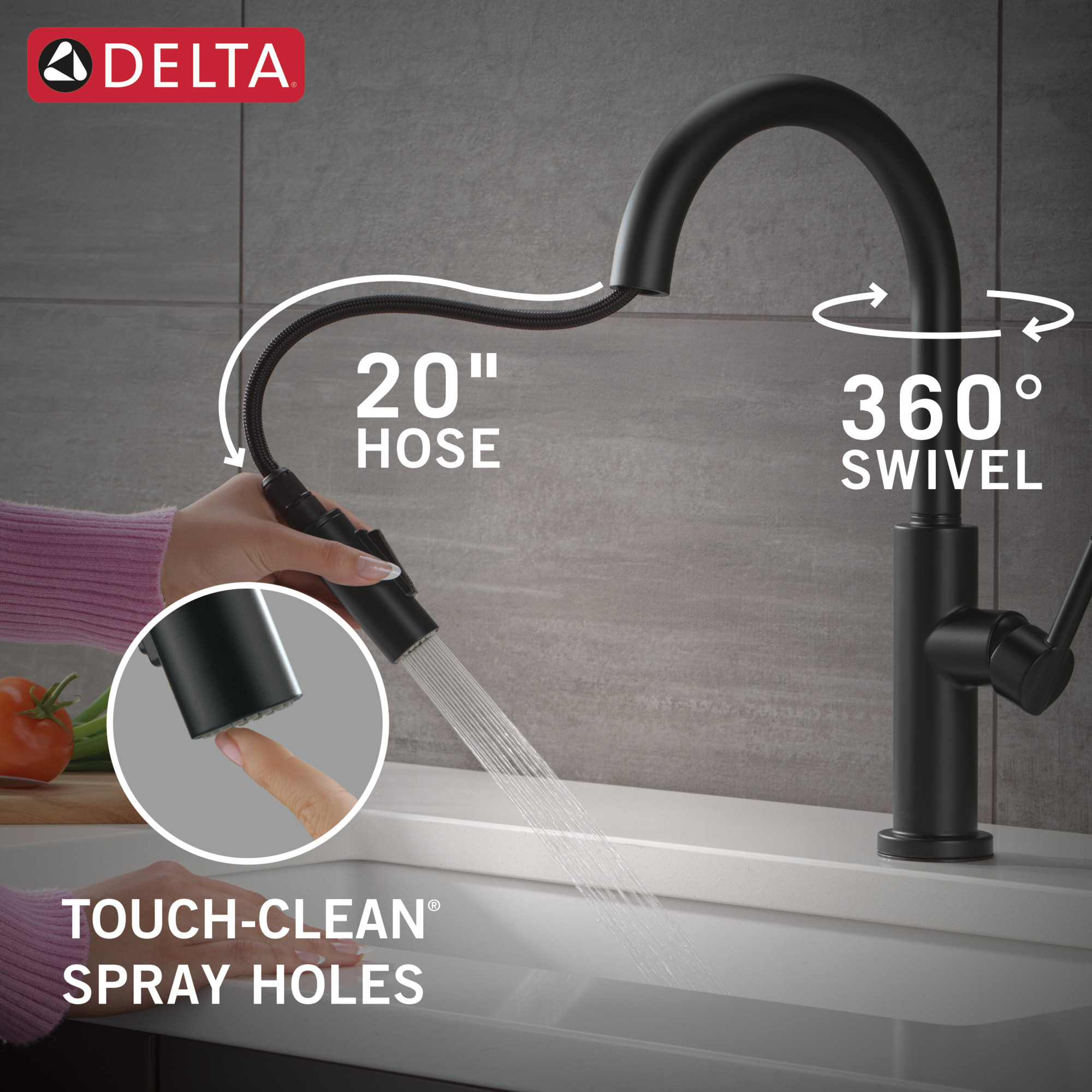 - The high-arc, gooseneck design swivels 360 degrees with a 20-in. retractable hose for added convenience during everyday kitchen tasks