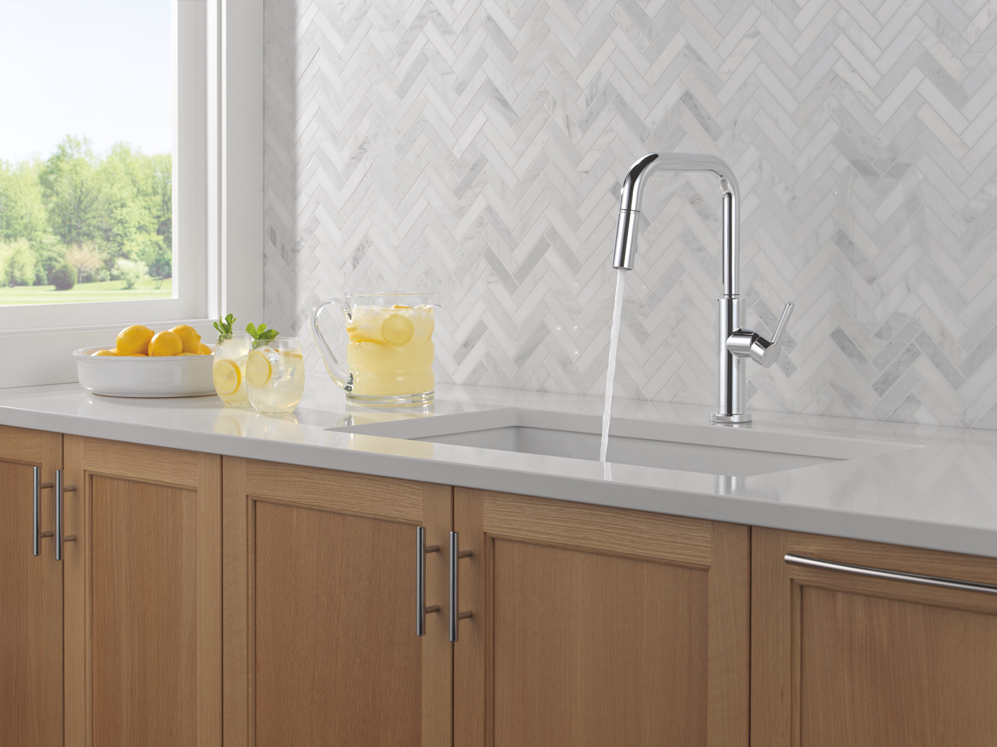 - The high-arc, gooseneck design swivels 360 degrees with a 20-in. retractable hose for added convenience during everyday kitchen tasks