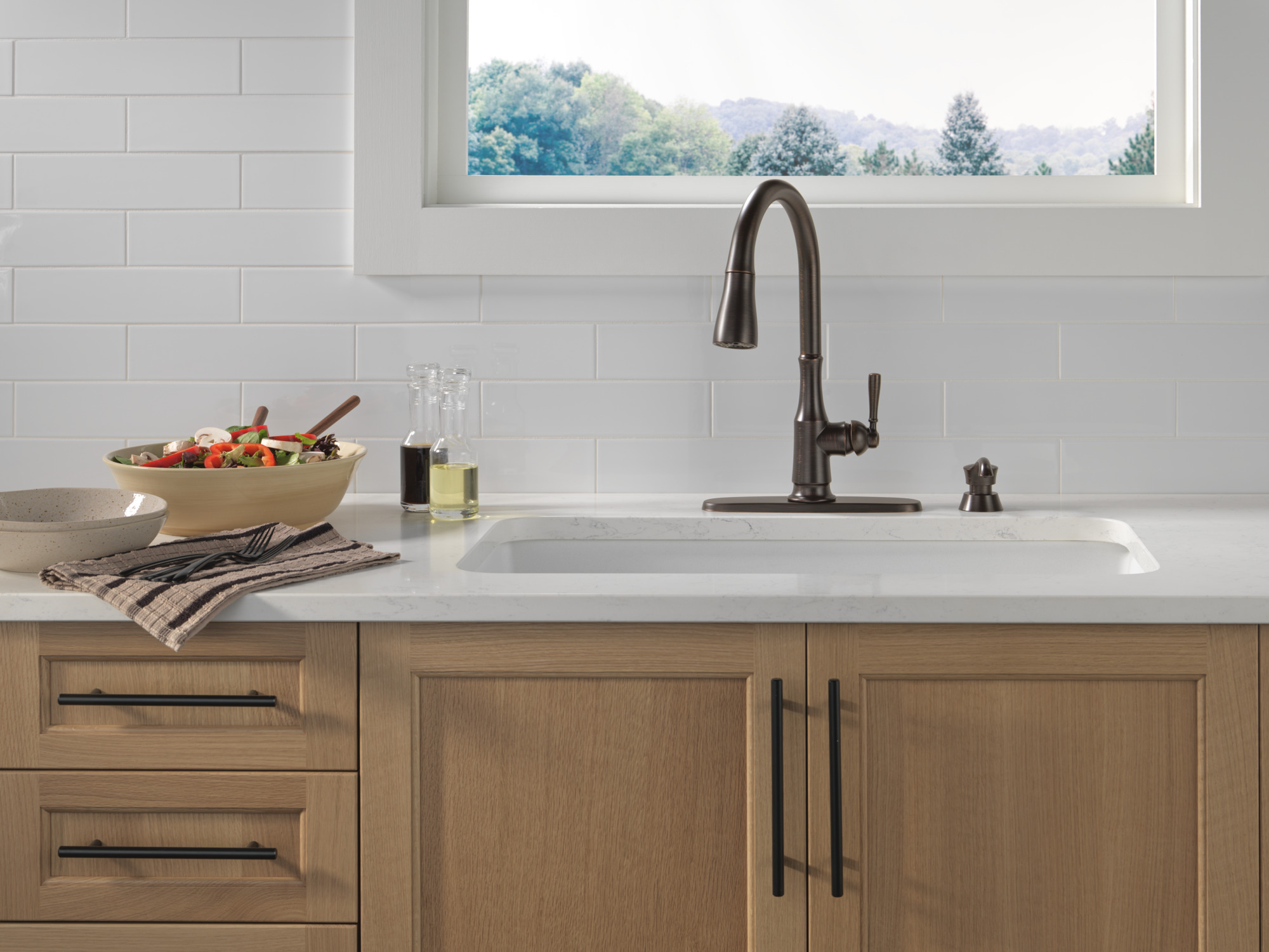Delta Capertee™: Single Handle Pull-Down Kitchen Faucet with Soap Dispenser and ShieldSpray Technology