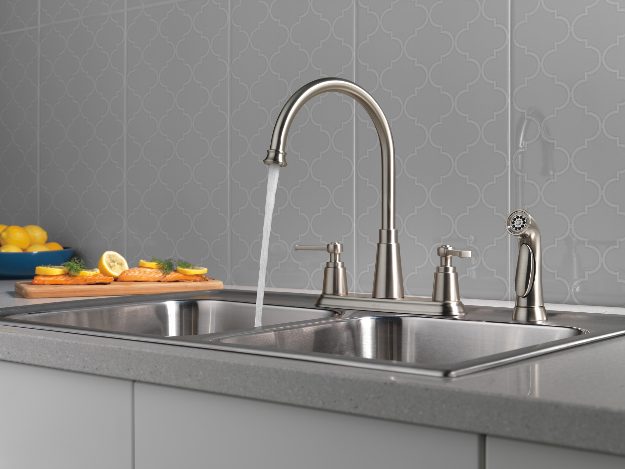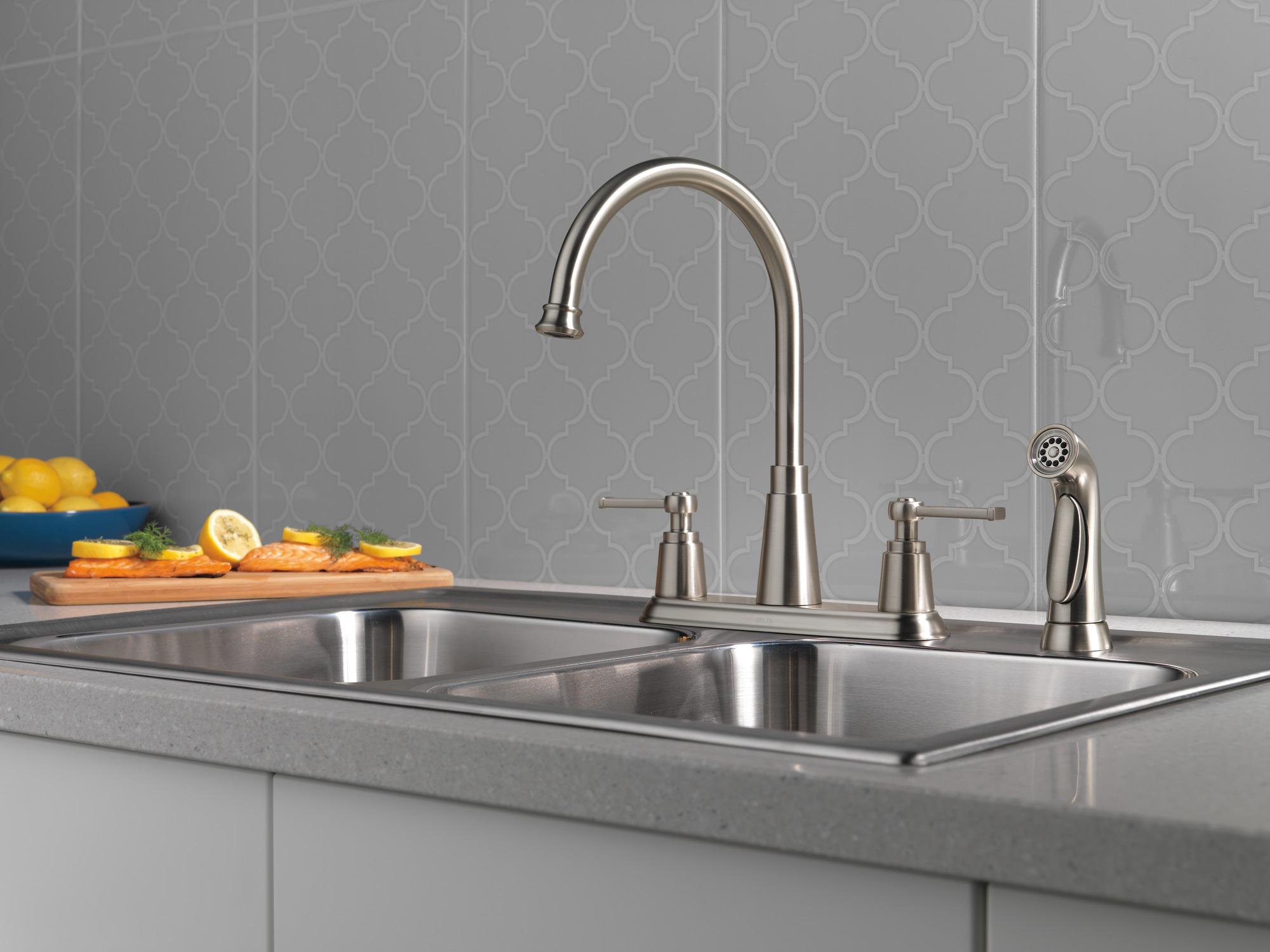 Delta Emmett®: Two Handle Kitchen Faucet with Spray