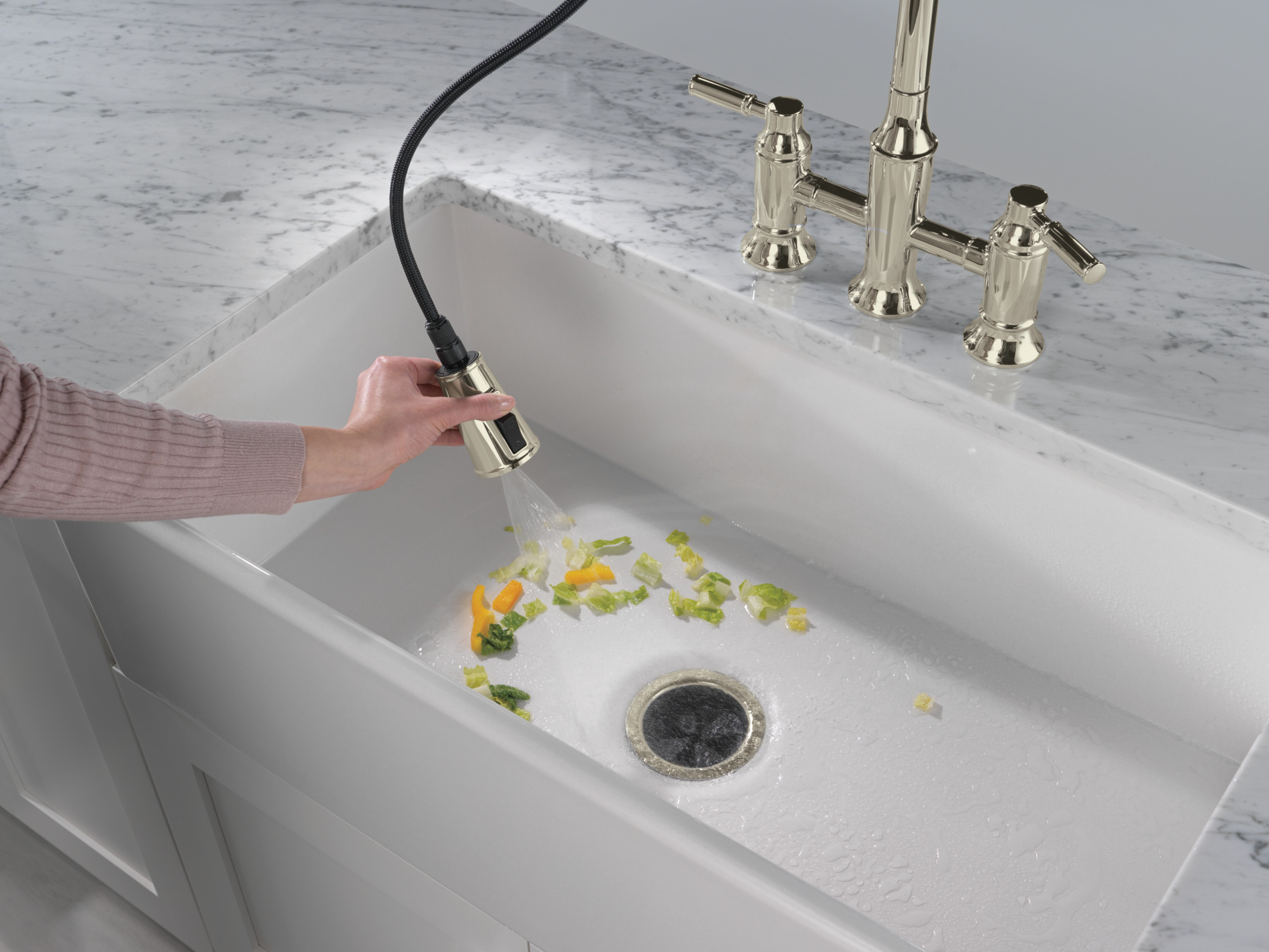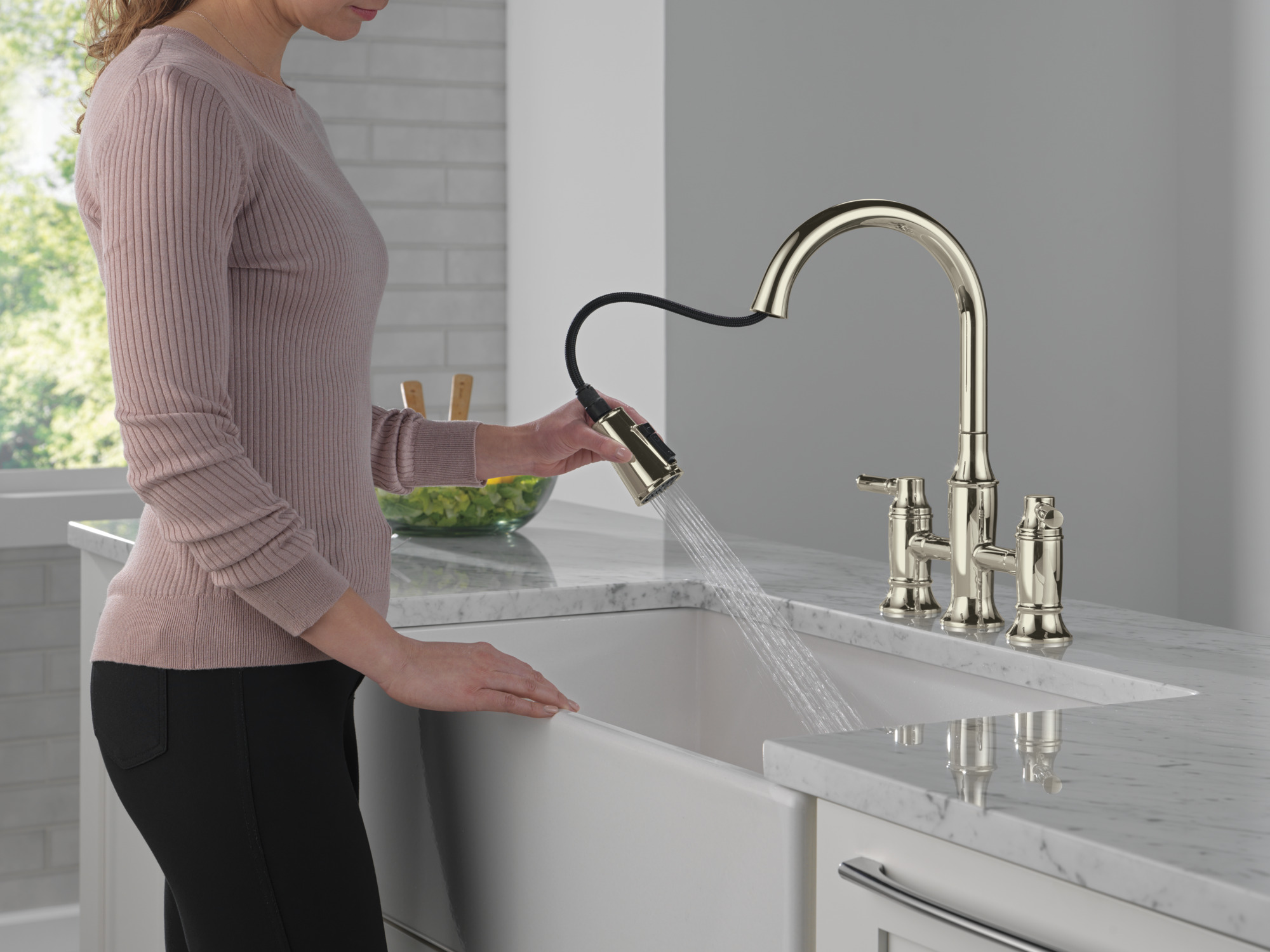 Delta Renaldi™: Two Handle Pull-Down Bridge Kitchen Faucet