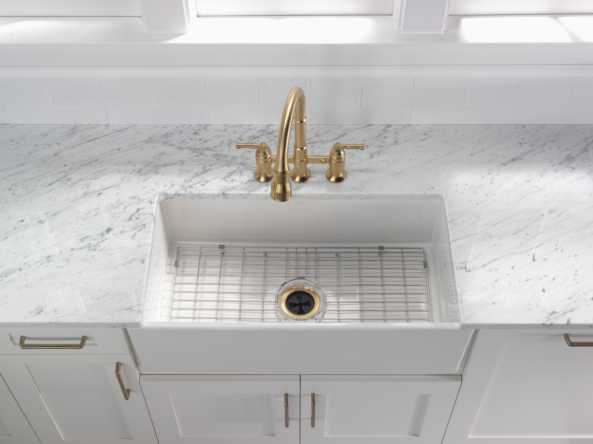 Delta Broderick®: Two Handle Pull-Down Bridge Kitchen Faucet