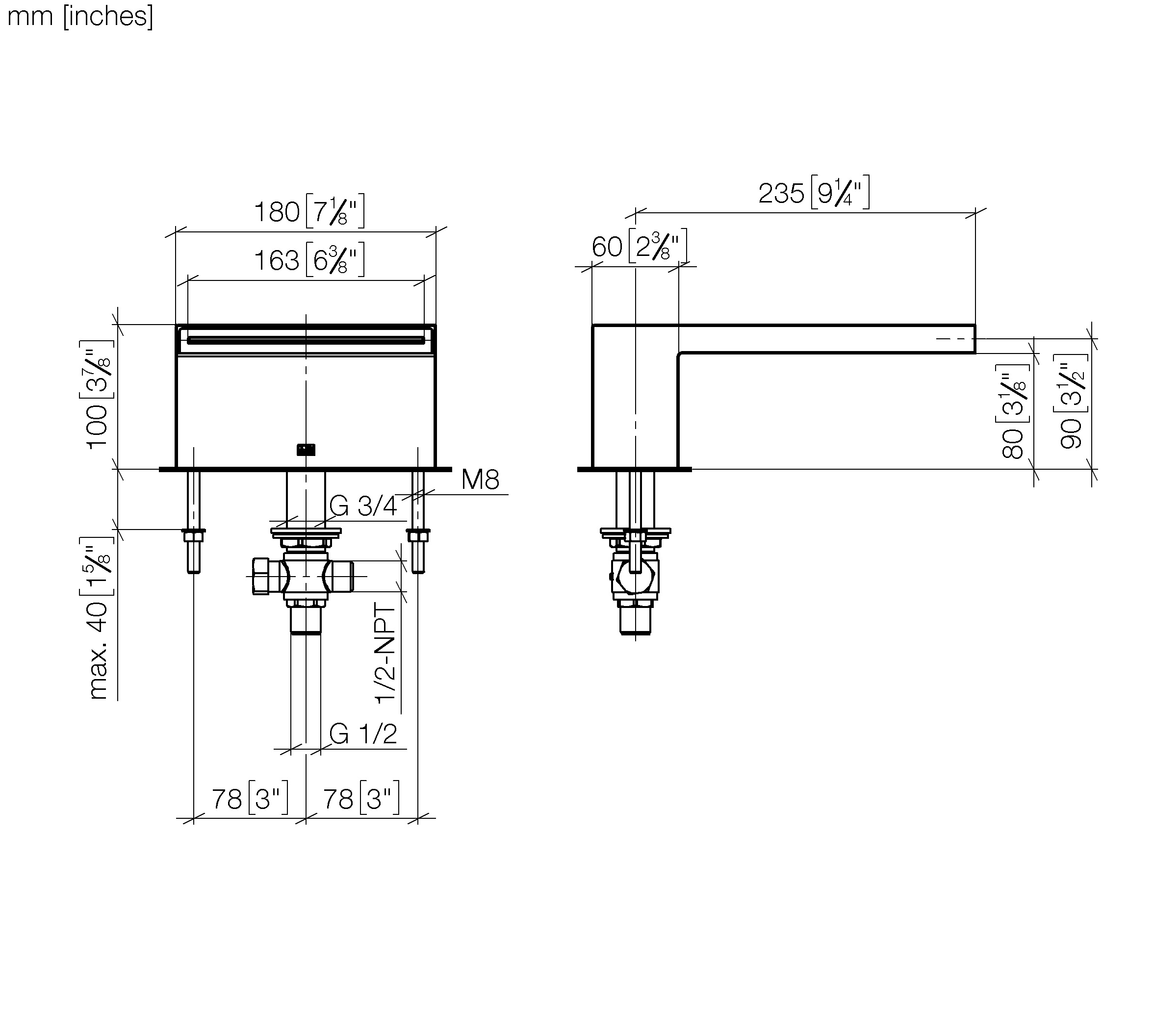 - Water flow rate limited to max. 7 gpm