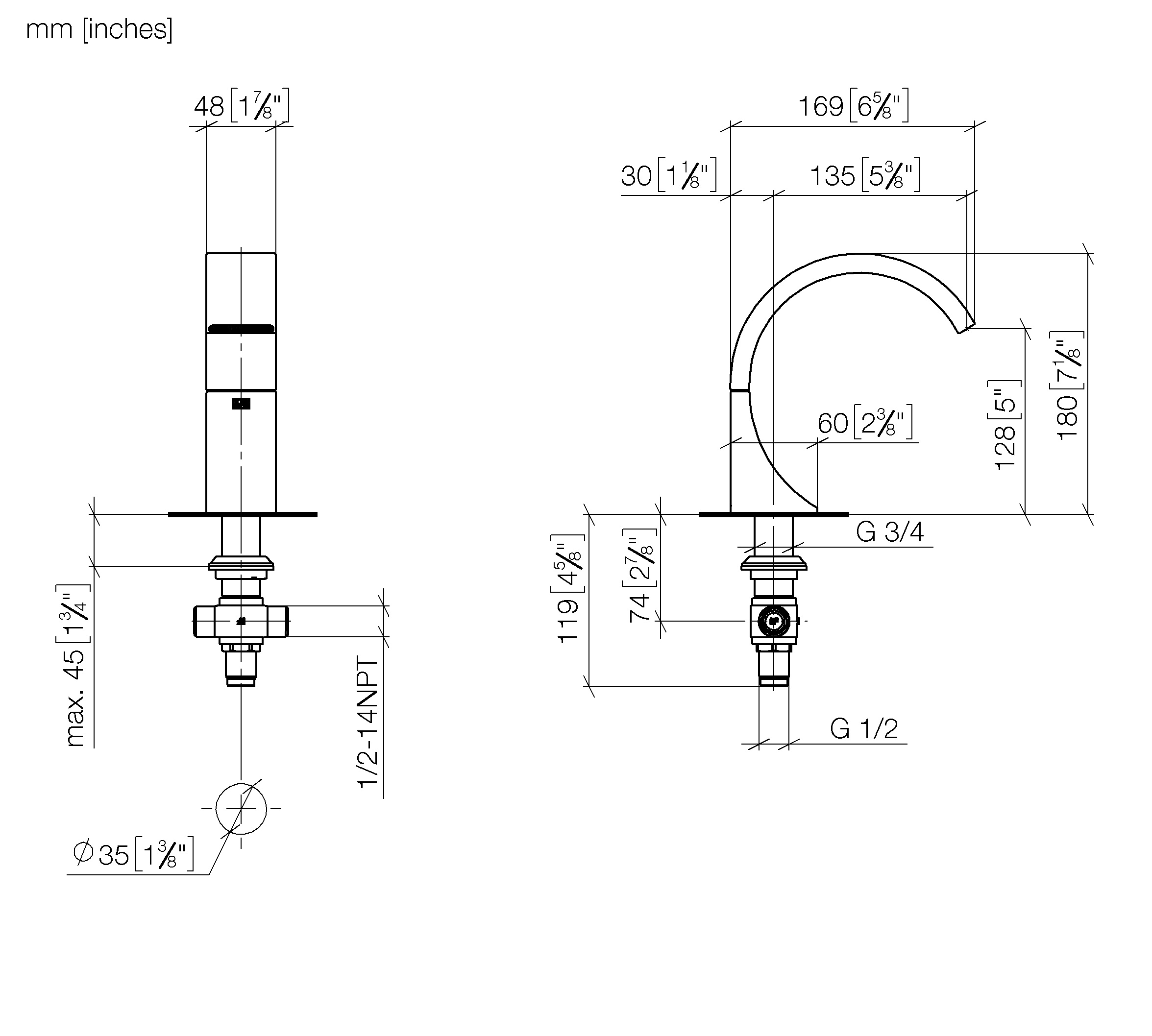 CYO Lavatory spout, deck-mounted without drain - Platinum / Brushed Platinum
