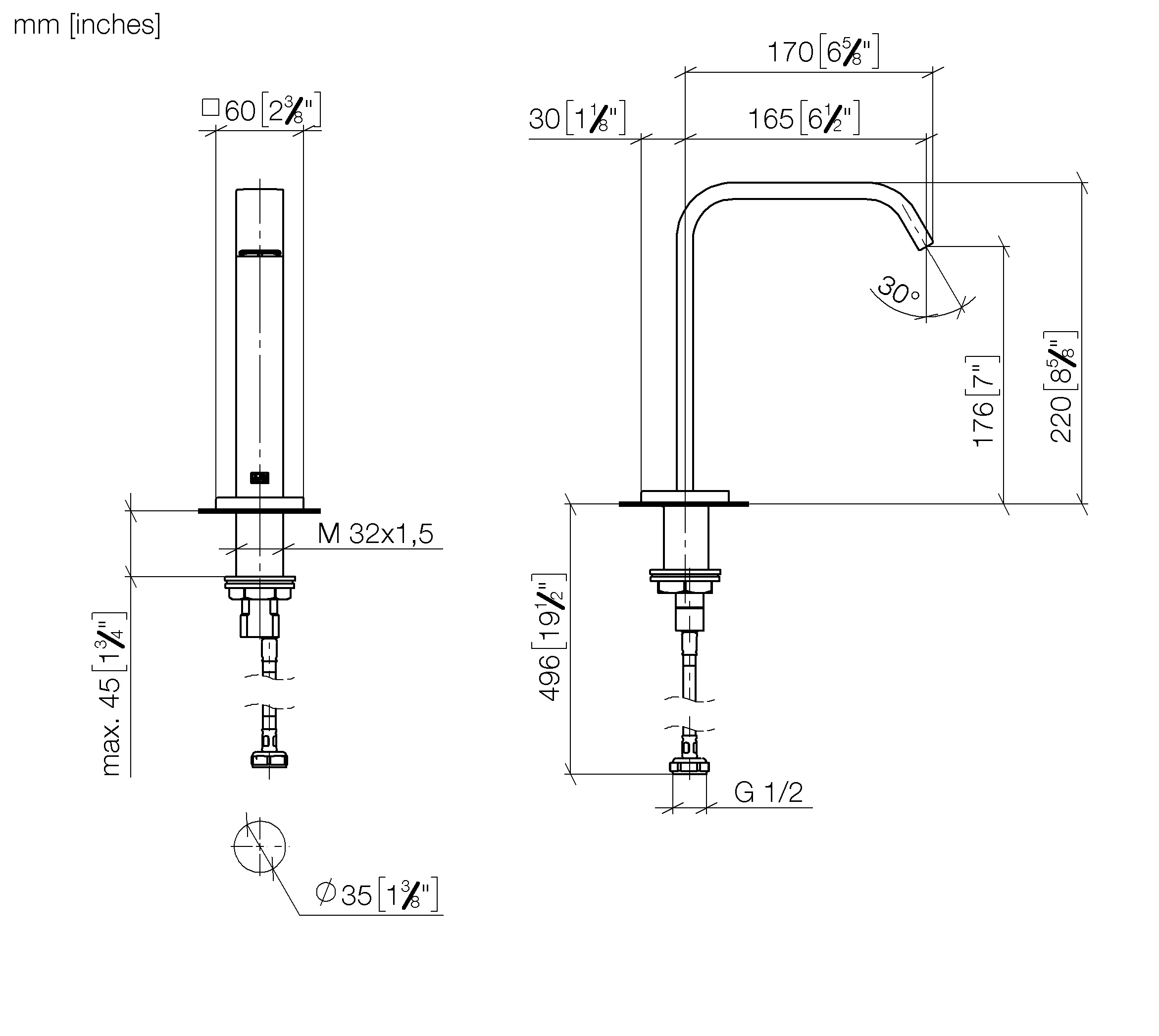 IMO Lavatory spout, deck-mounted without drain - Chrome