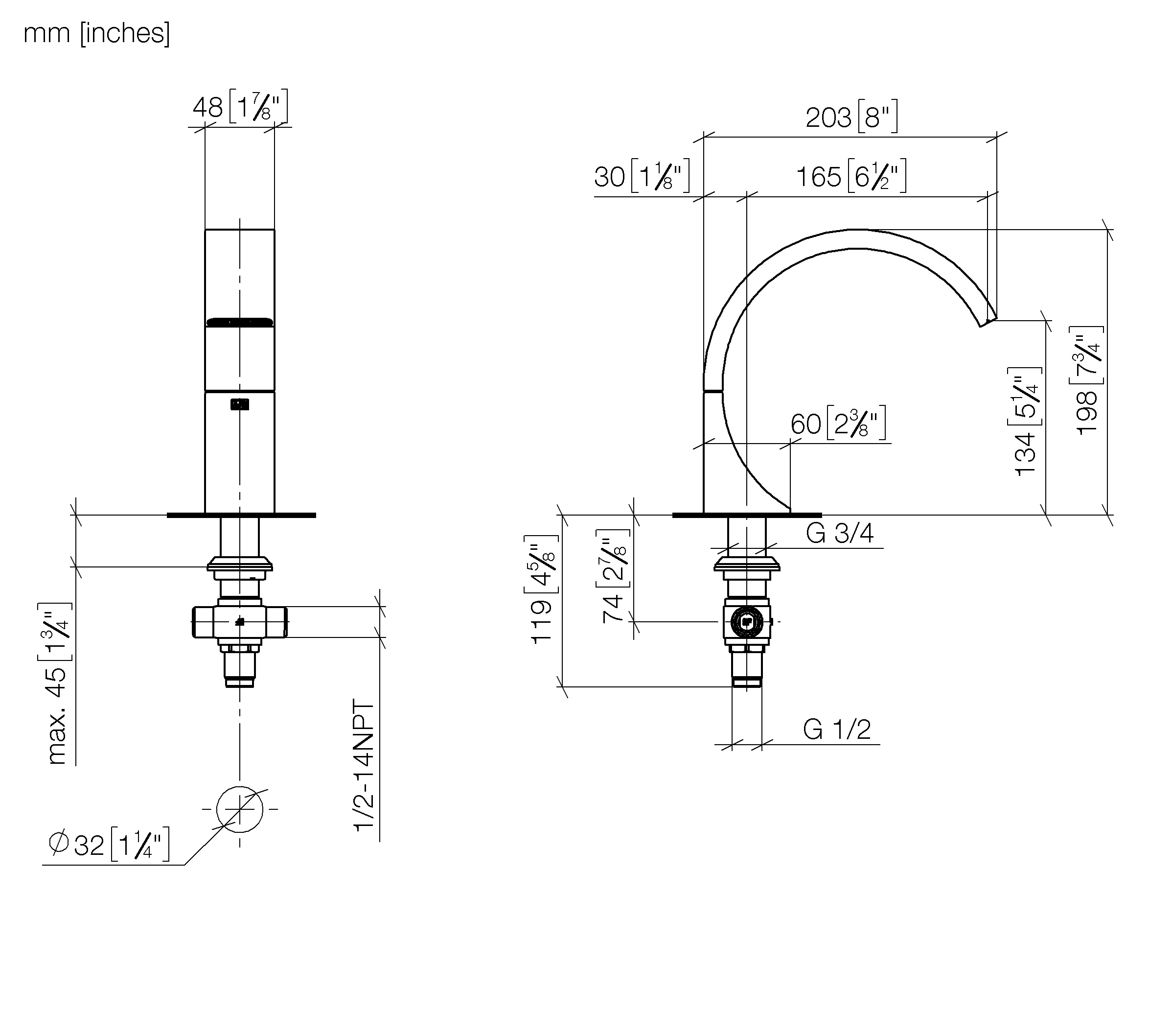 CYO Lavatory spout, deck-mounted without drain - Dark Chrome