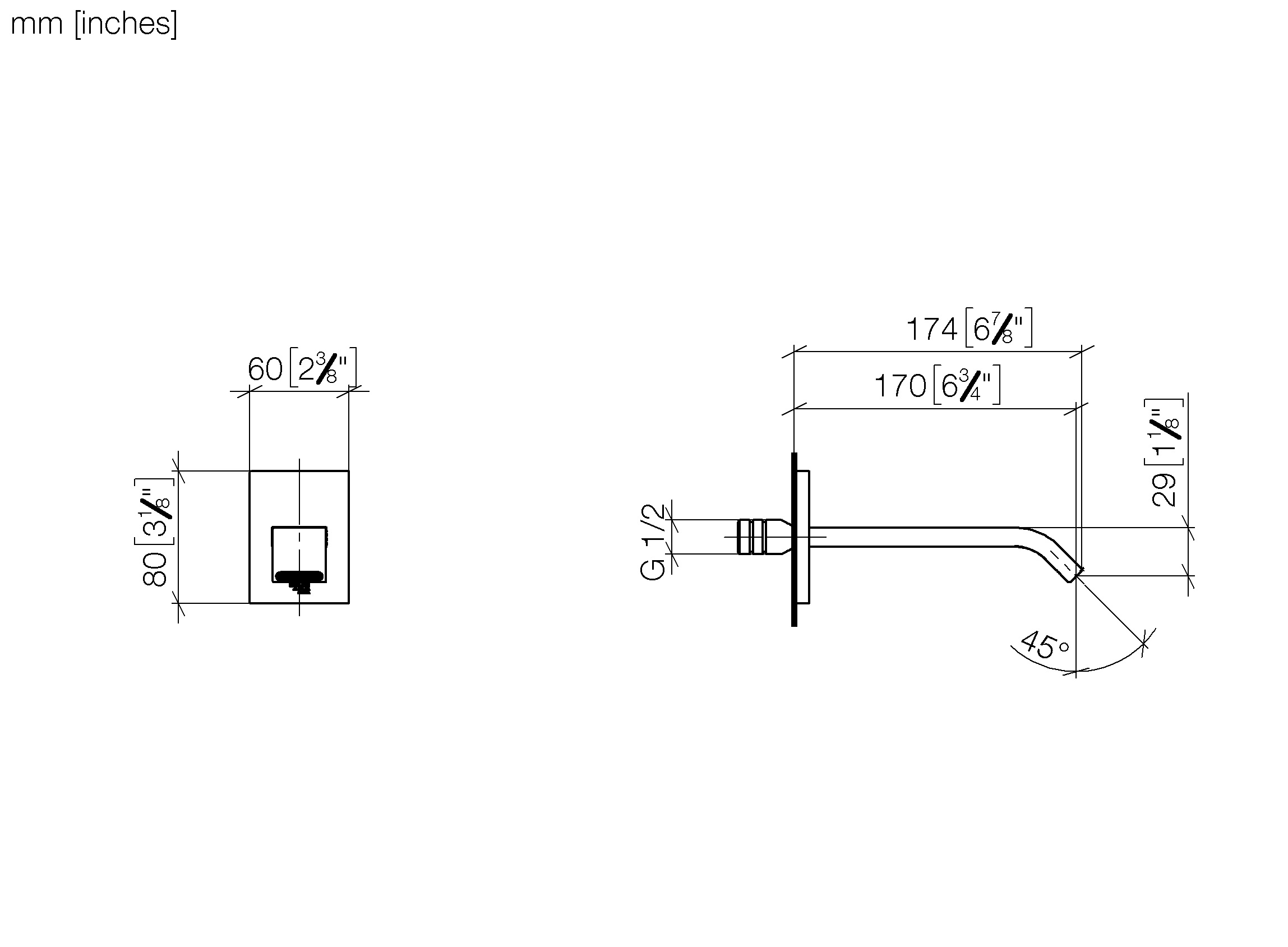IMO Lavatory spout, wall-mounted without drain - Brushed Chrome