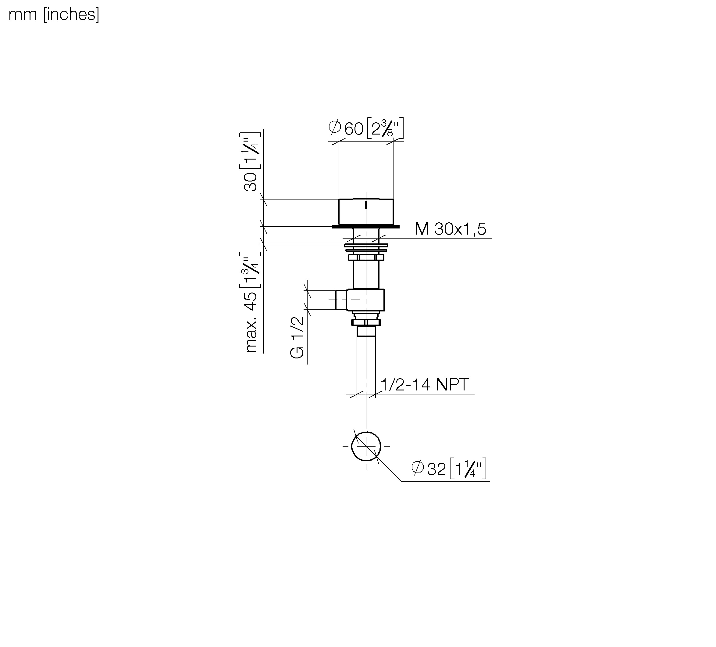 Deck valve clockwise-closing cold - Brushed Dark Platinum