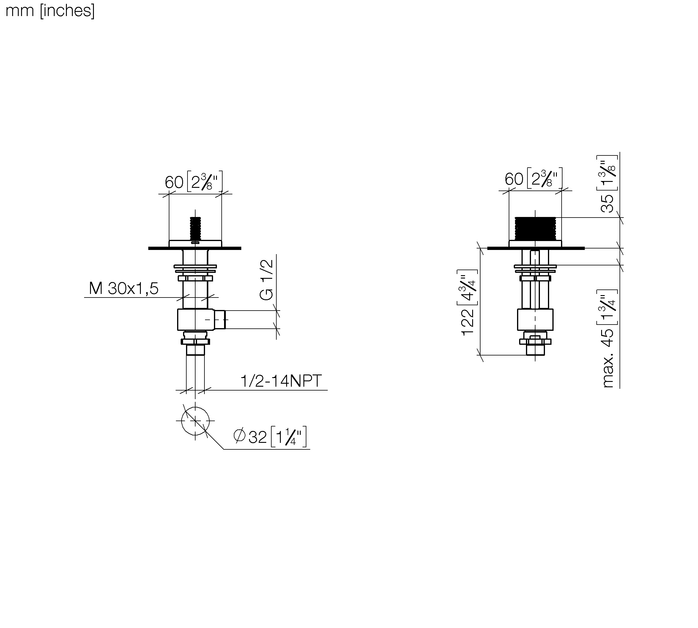 - 1-1/4 hole diameter
