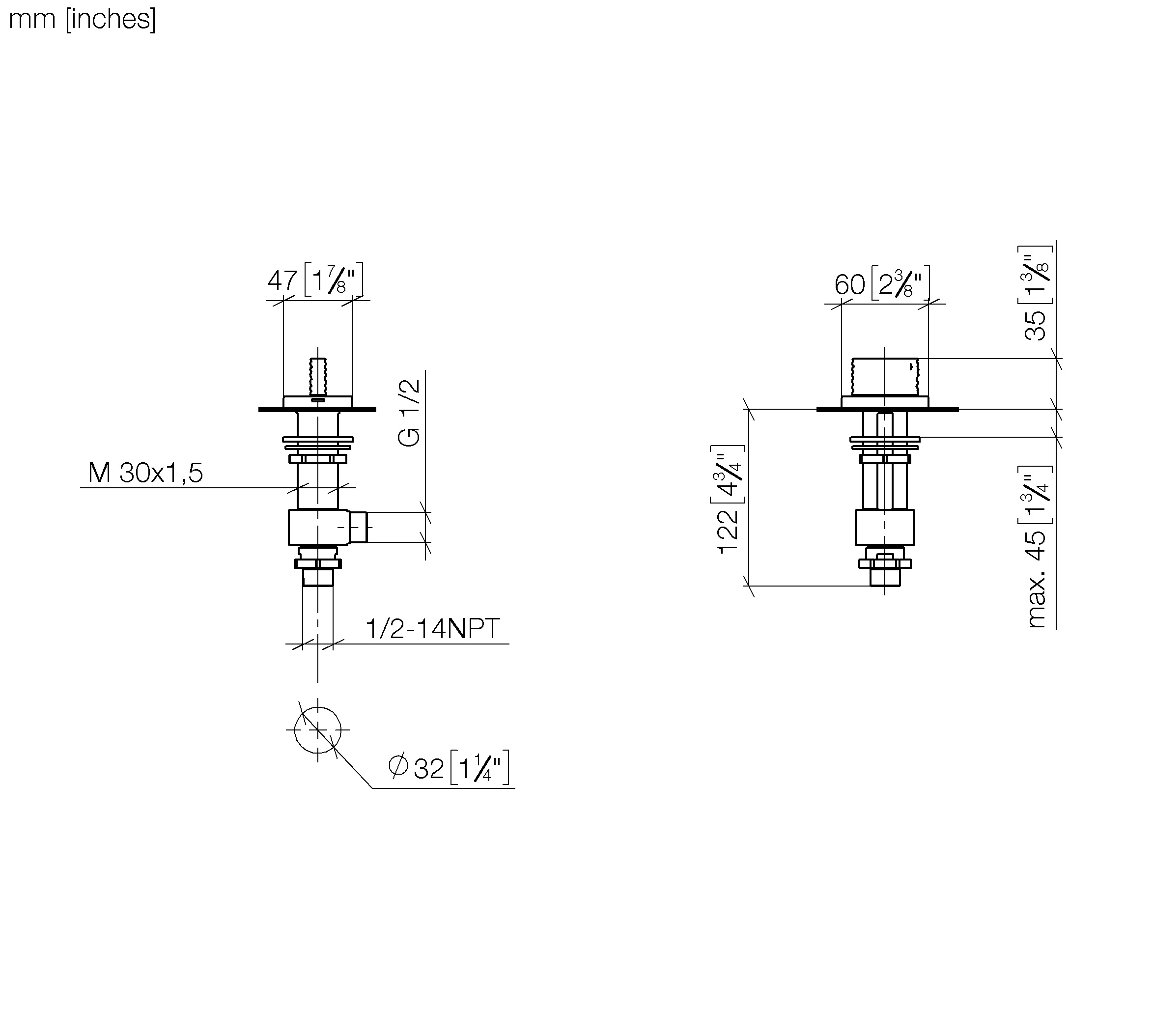 - 1-1/4 hole diameter