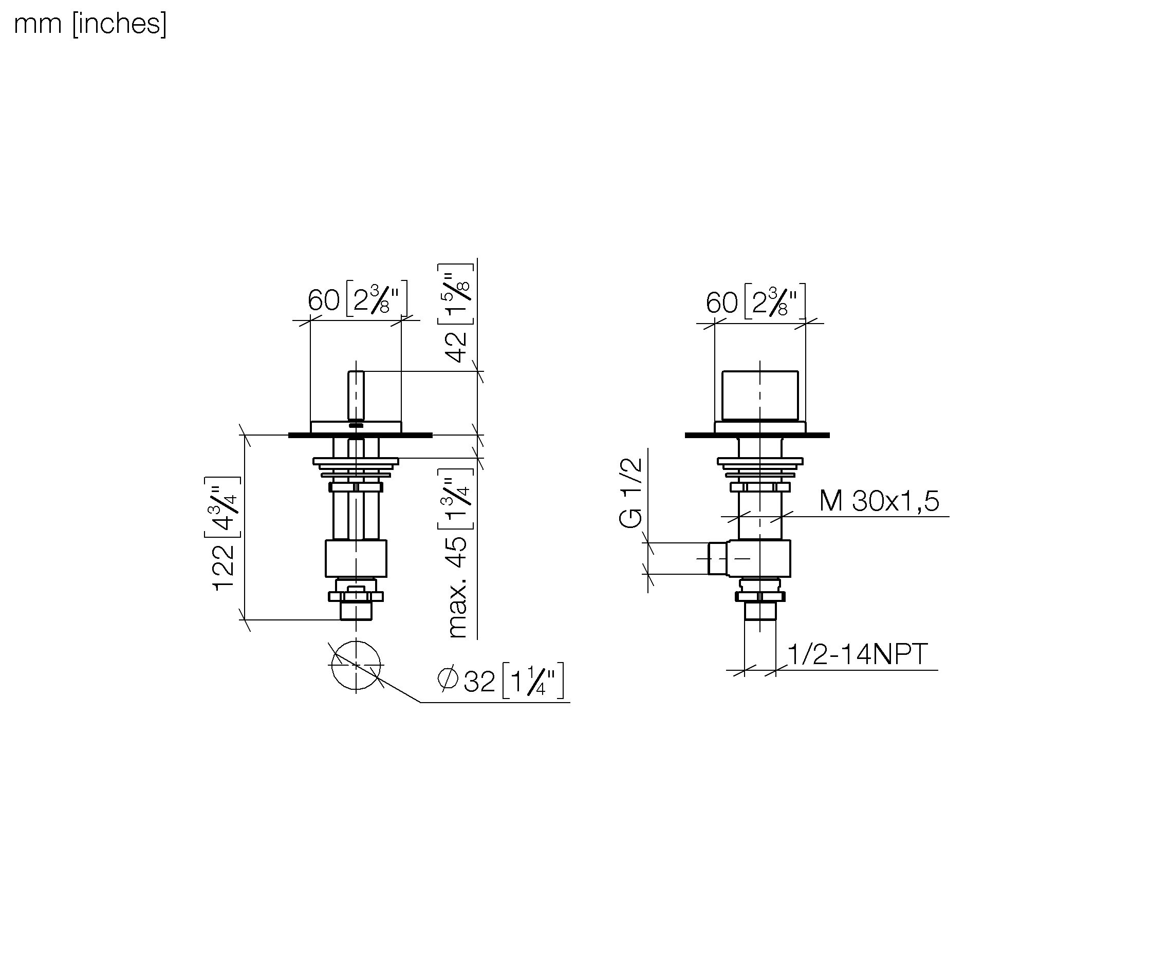 MEM Deck valve counter-clockwise closing hot - Brushed Champagne (22kt Gold)