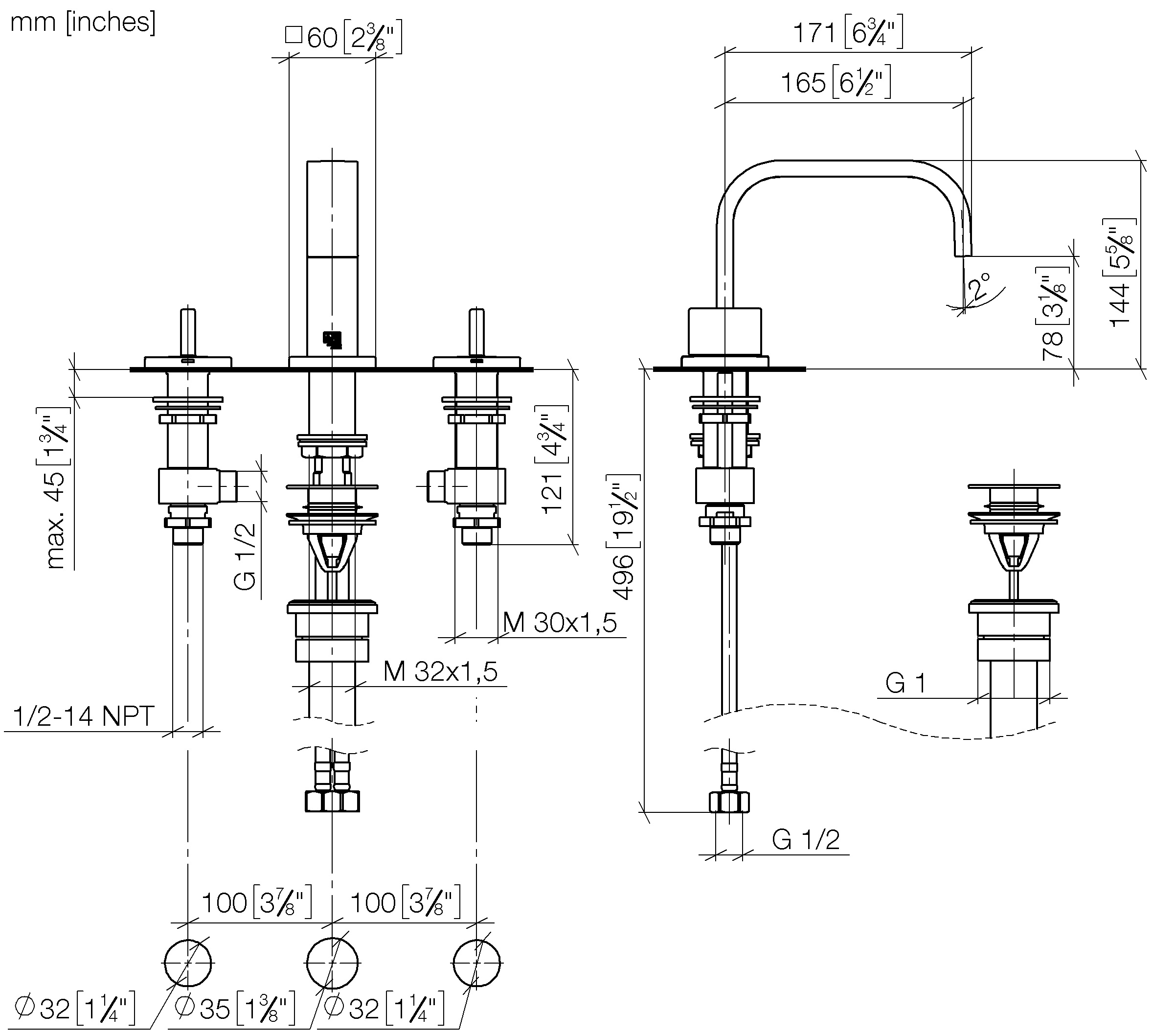 - Spout hole diameter 1-3/8