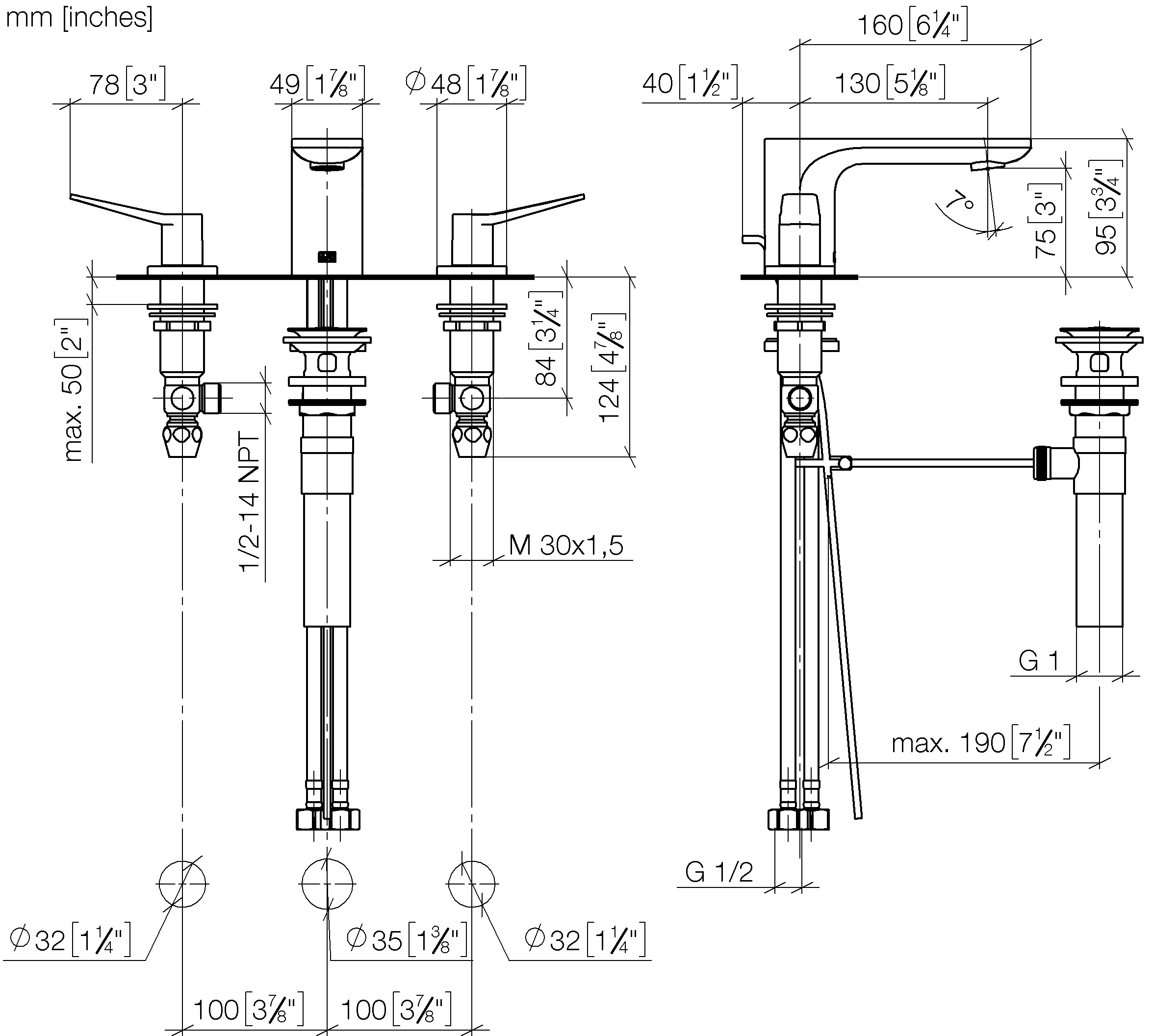 LISSÉ Three-hole lavatory mixer with drain - Matte Black