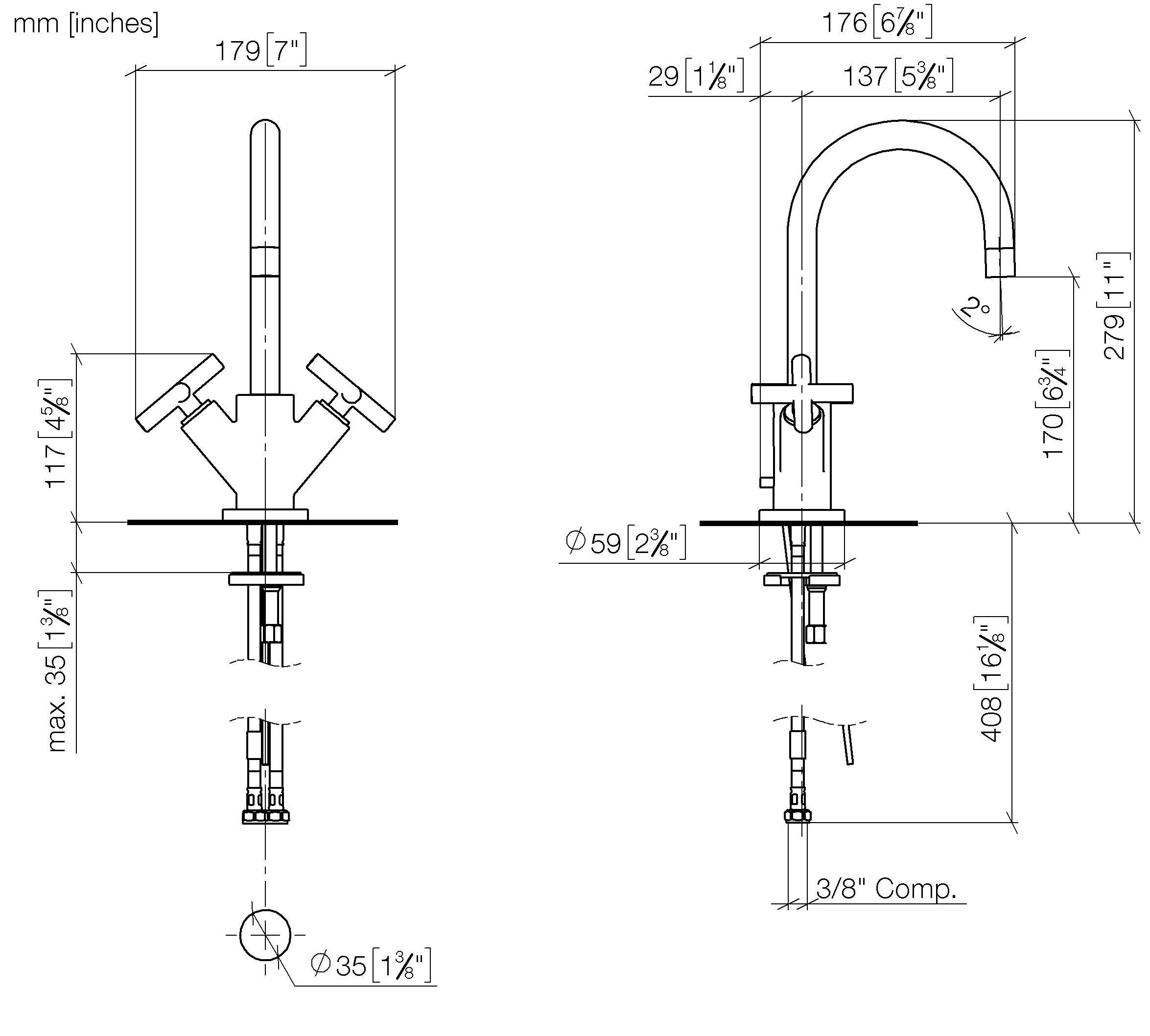 TARA Single-hole lavatory mixer with drain - Brushed Chrome