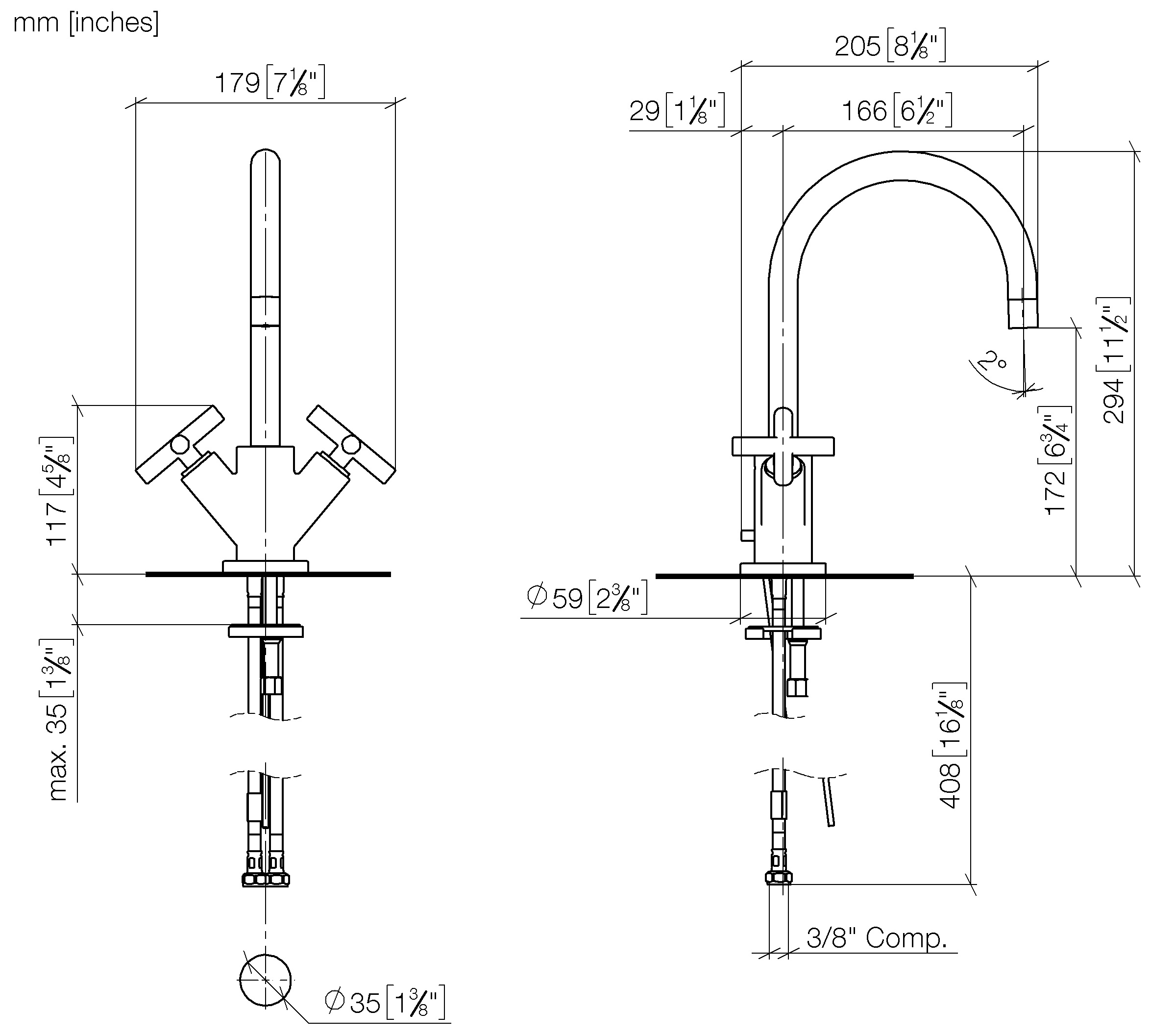 TARA Single-hole lavatory mixer with drain - Brushed Chrome