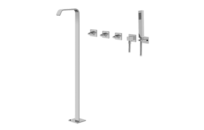 Floor-Mounted Tub Filler w/Wall-Mounted Handshower & Diverter