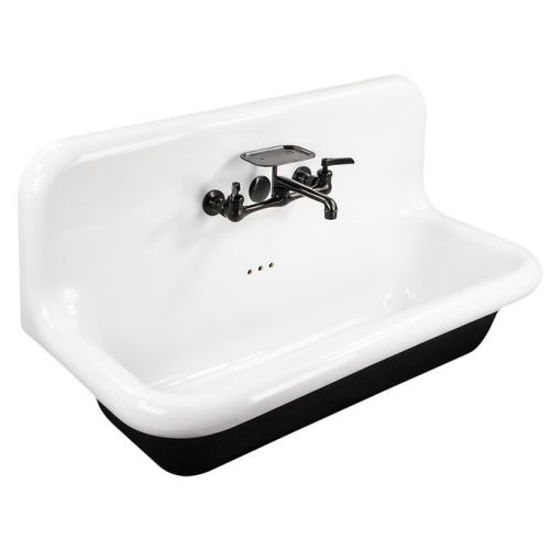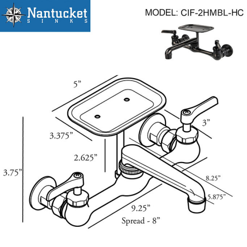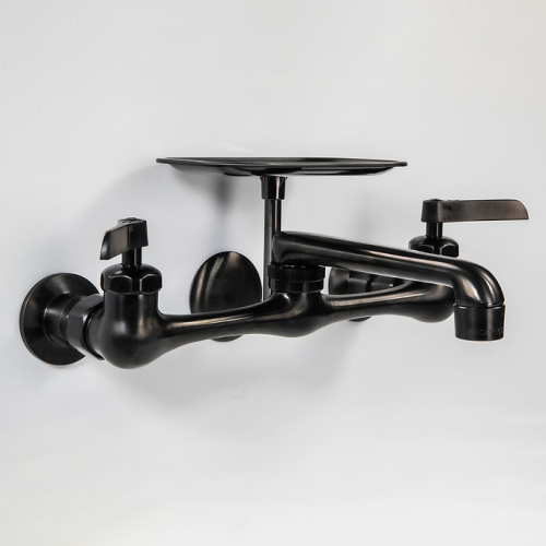Victorian Collection - Matte Black Finish Wallmount Sink Faucet with Soap Dish (2 Hole/8" Spread)