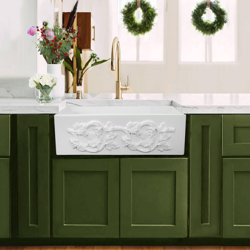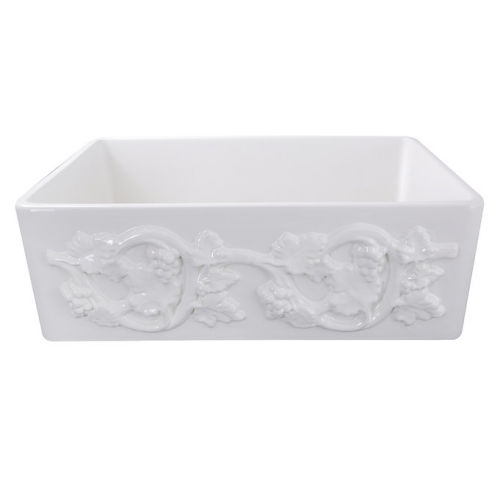 Vineyard Collection - 33 Inch Farmhouse Fireclay Sink with Grapes Vine Motif Apron