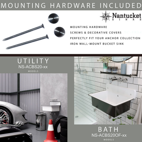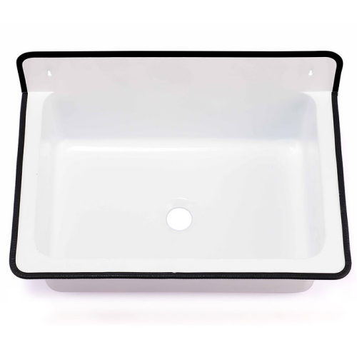 Anchor Collection - Wallmount Iron Bucket Sink- No Overflow, White Finish/ Black Trim