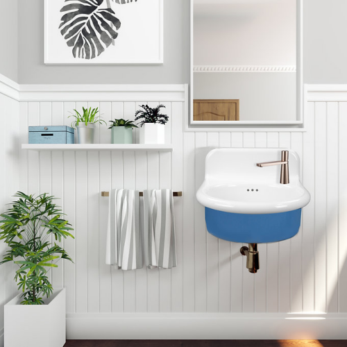 Victorian Collection - 18 inch Rounded Front Fireclay Wallmount Bathroom Sink, Blue Finish