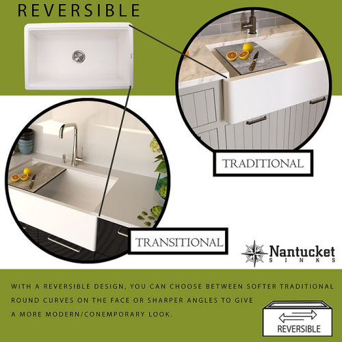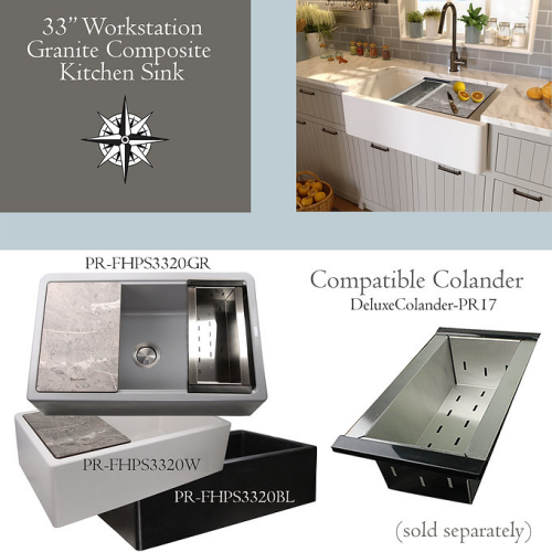 Plymouth Collection - 33" Granite Composite Reversible Farmhouse Kitchen Sink