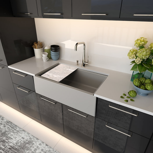 Plymouth Collection - 33" Granite Composite Reversible Farmhouse Kitchen Sink with Cutting Board