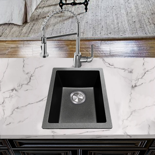 Rockport Collection - 15 x18" Single Bowl Dualmount Granite Composite Bar-Prep Sink, Black
