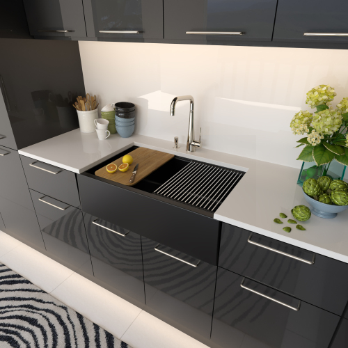 Nantucket Sinks 33-Inch Reversible Workstation Granite Composite Apron Sink With Accessory Pack