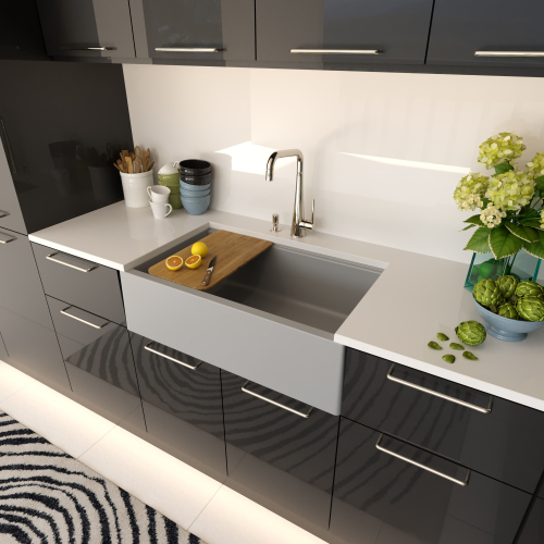 Nantucket Sinks 33-Inch Reversible Workstation Granite Composite Apron Sink With Accessory Pack