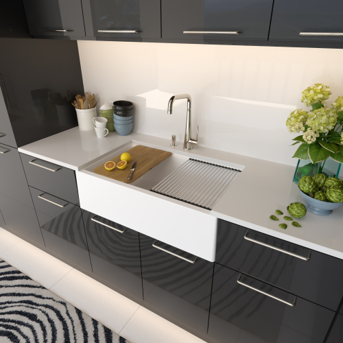 Nantucket Sinks 33-Inch Reversible Workstation Granite Composite Apron Sink With Accessory Pack