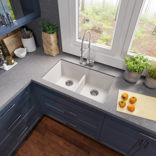 Nantucket Sinks Undermount Double Equal Bowls With Low Divide - Granite Composite White