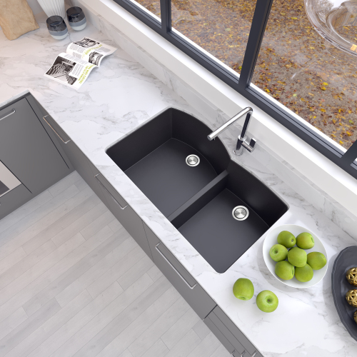Nantucket Sinks 60/40 Double Bowl Undermount Granite Composite Black