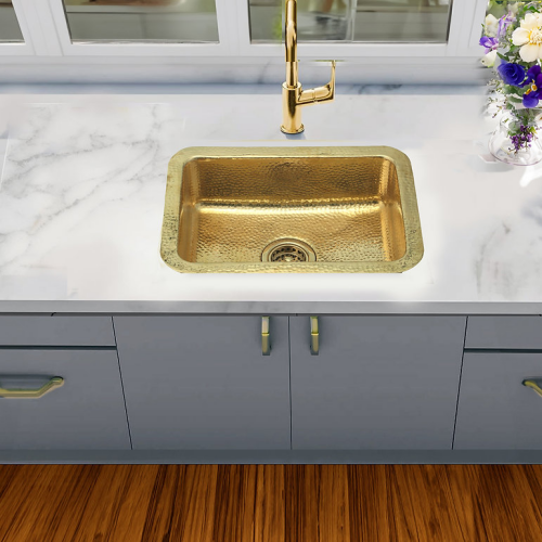 Brightwork Collection - 20 Inch Dualmount Hand-Hammered Single Bowl Bar Sink