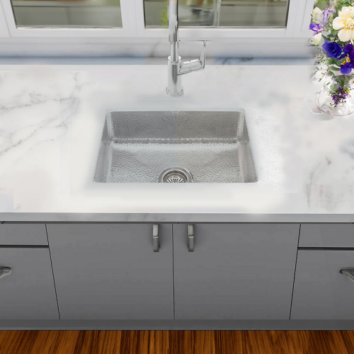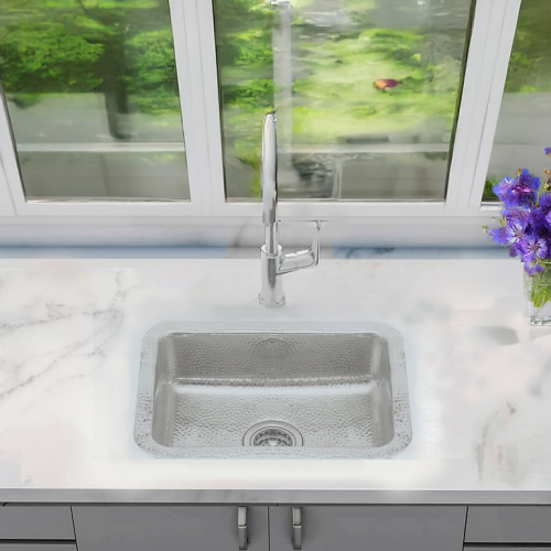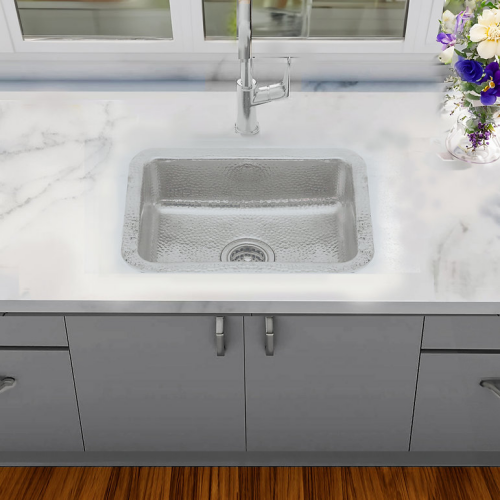 Brightwork Collection - 20 Inch Dualmount Hand-Hammered Single Bowl Bar Sink, Matte Finish