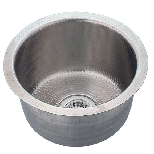 Brightwork Collection - 15" Dualmount Hand Hammered Stainless Steel Round Bar Sink, Satin Matte Finish