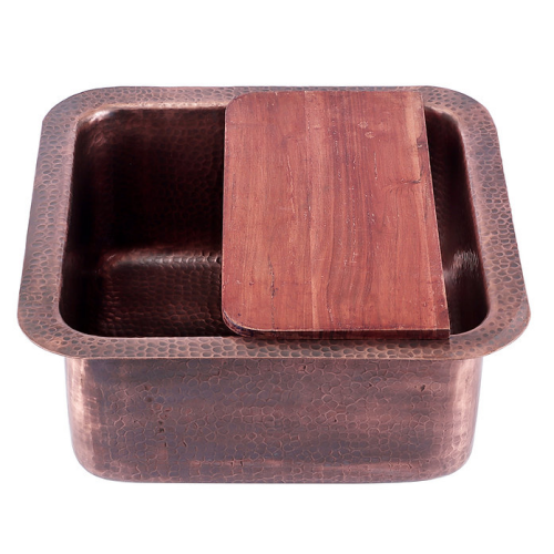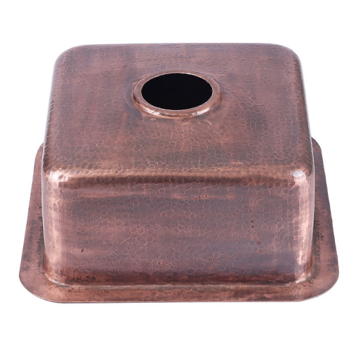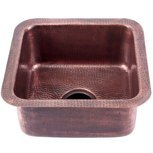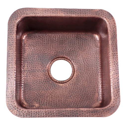 Brightwork Collection - 16.625" Hammered Copper Square Dualmount Bar/Prep Sink