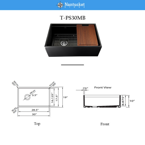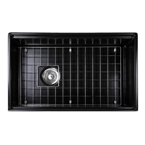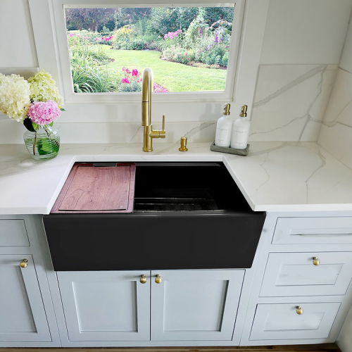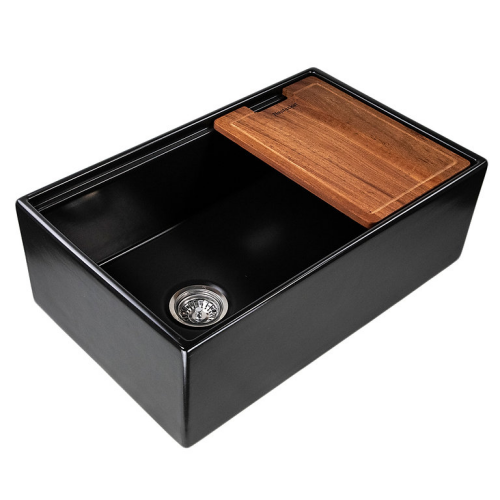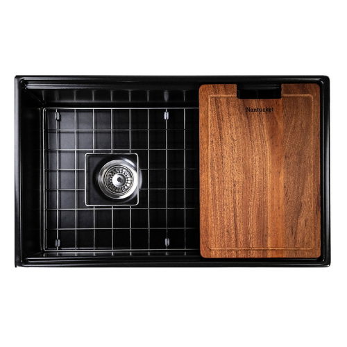 Cape Collection - 30 Inch Reversible Workstation Farmhouse Fireclay Sink with Offset Drain and Accessories