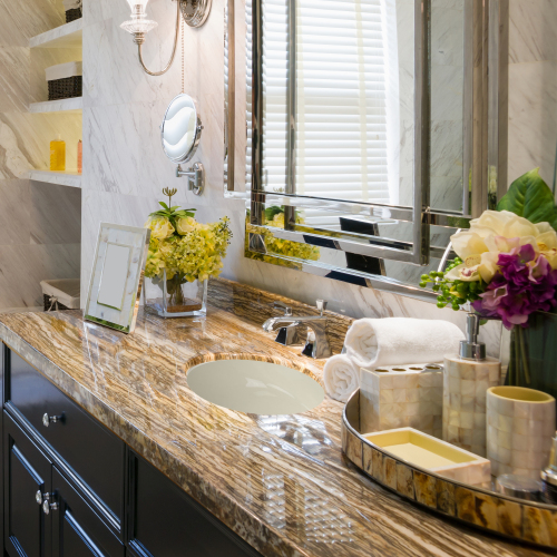 - Bisque color is perfect choice for sink in bathroom or powder room with a warm color scheme