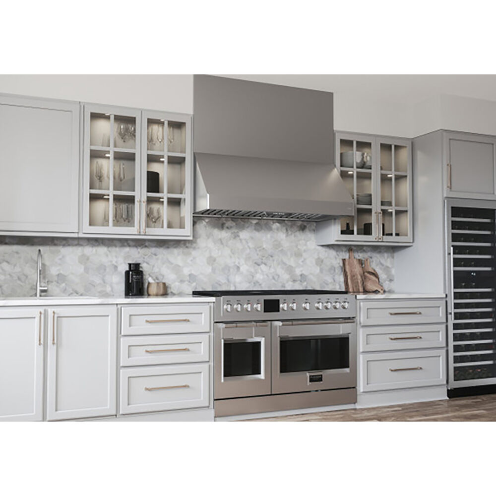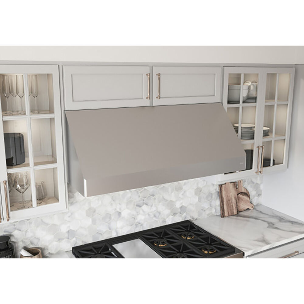 - Give a modern look to your kitchen with this stainless steel color vent hood